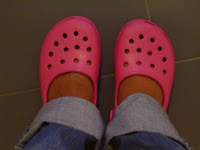 São giros!! Viva a moda Crocs ... eu conheci esses simpaticos e leves sapatinhos na maternidade, as enfermeiras andavam com ele e como fiquei internada com a Mi 12 dias, e andava sp em pé, uma enfermeira, que sabia o quanto gostava de crocs, comprou-me uns. Tive pena que depois no dia em que tive alta, deixei-os na casa de banho quando mudava de roupa p vir para casa. Ainda lá voltei mas nem crocs, nem carregador de telemóvel... levaram logo roda dos 5 dedos ;)))